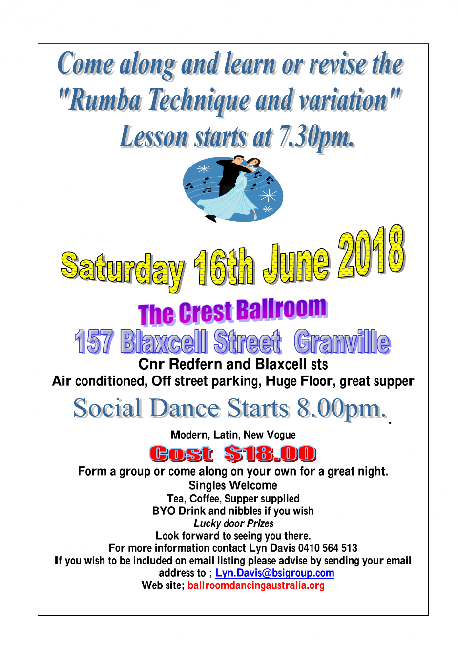 Bass Hill RSLYC Ballroom Festival 22nd July 2018