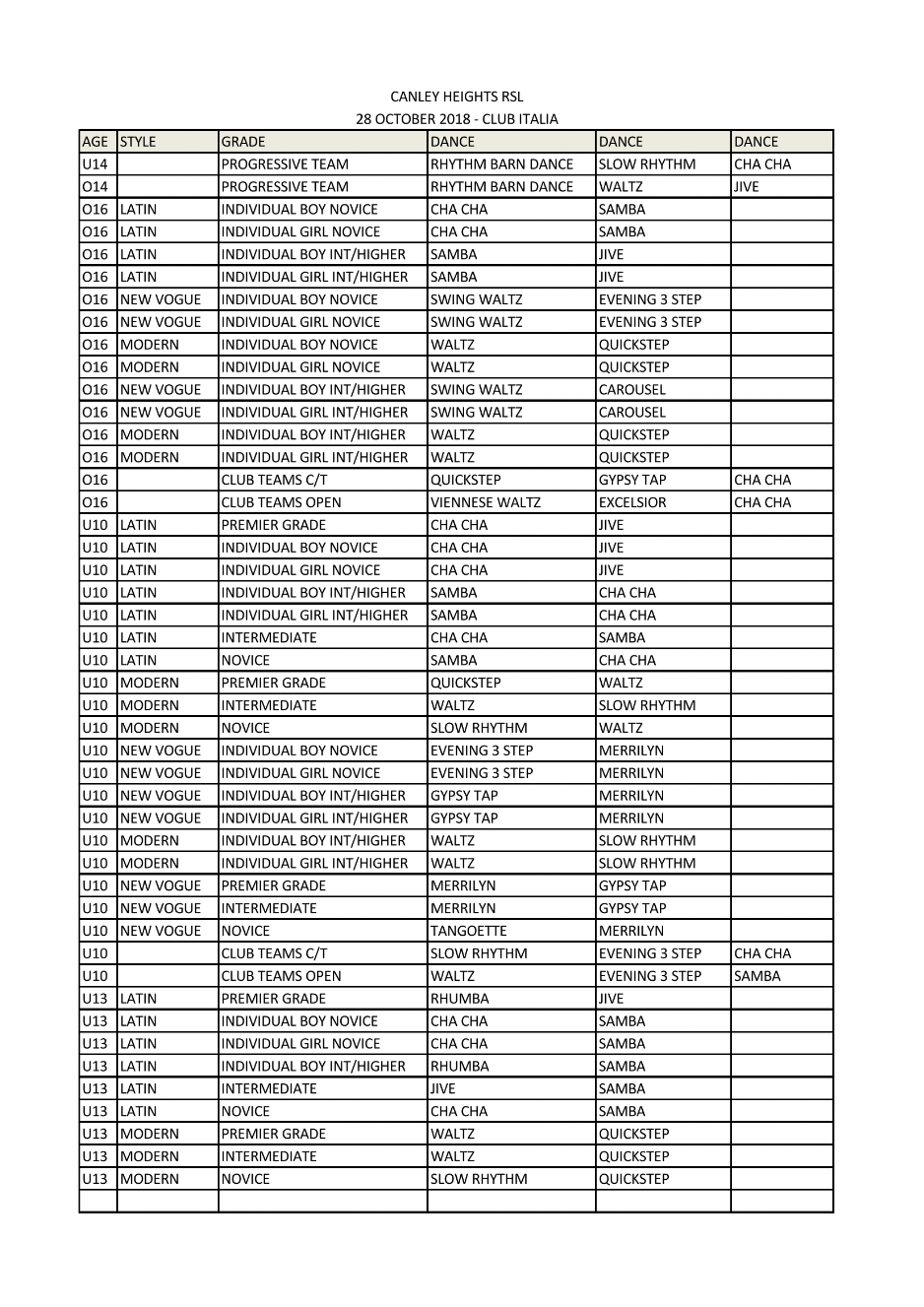 Canley Heights RSLYC Ballroom Festival 28th October 2018