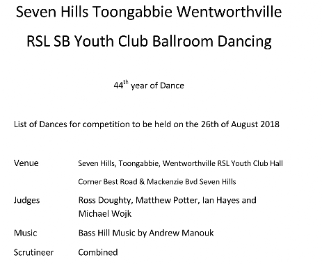 Seven Hills/Toongabbie/Wentworthville Ballroom Festival RSLYC 26th August 2018